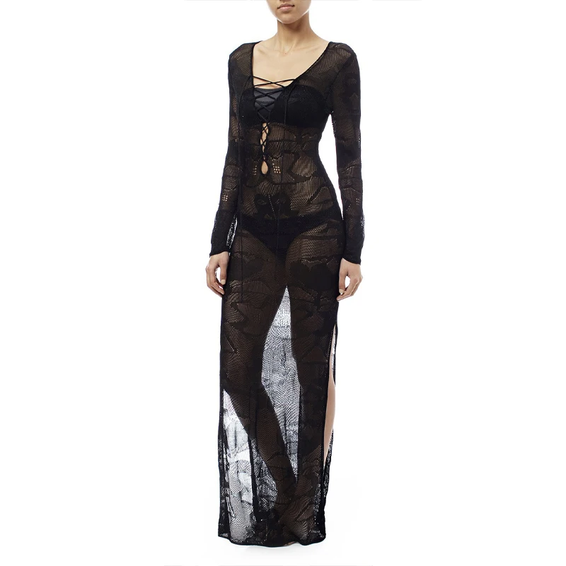 الفقرة برايا الجوف خارج محبوك فستان طويل 2025 فستان الشاطئ بيكيني غطاء ملابس السباحة يغطي مثير ملابس الشاطئ للنساء بحر