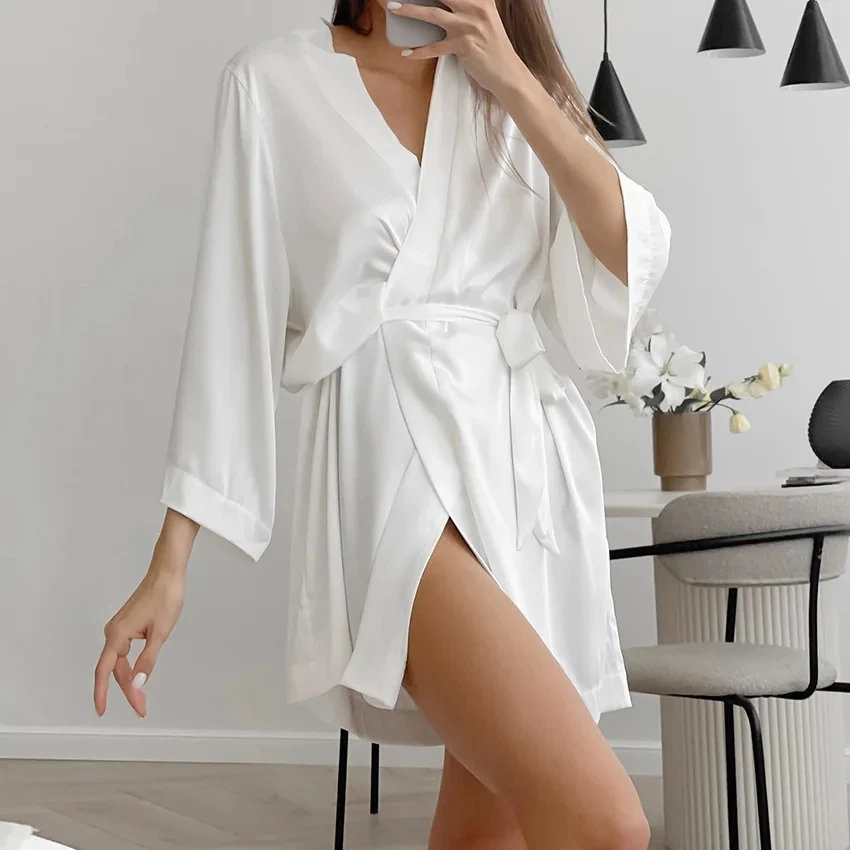Women White Bride Robe
